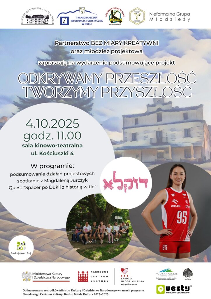 Już wkrótce Dukla stanie się miejscem ciekawego spotkania, które połączy historię, kulturę i młodzieńczą energię. Partnerstwo BEZ MIARY KREATYWNI oraz Młodzież Projektowa zapraszają na wydarzenie podsumowujące projekt Bardzo Młoda Kultura – Podkarpackie!